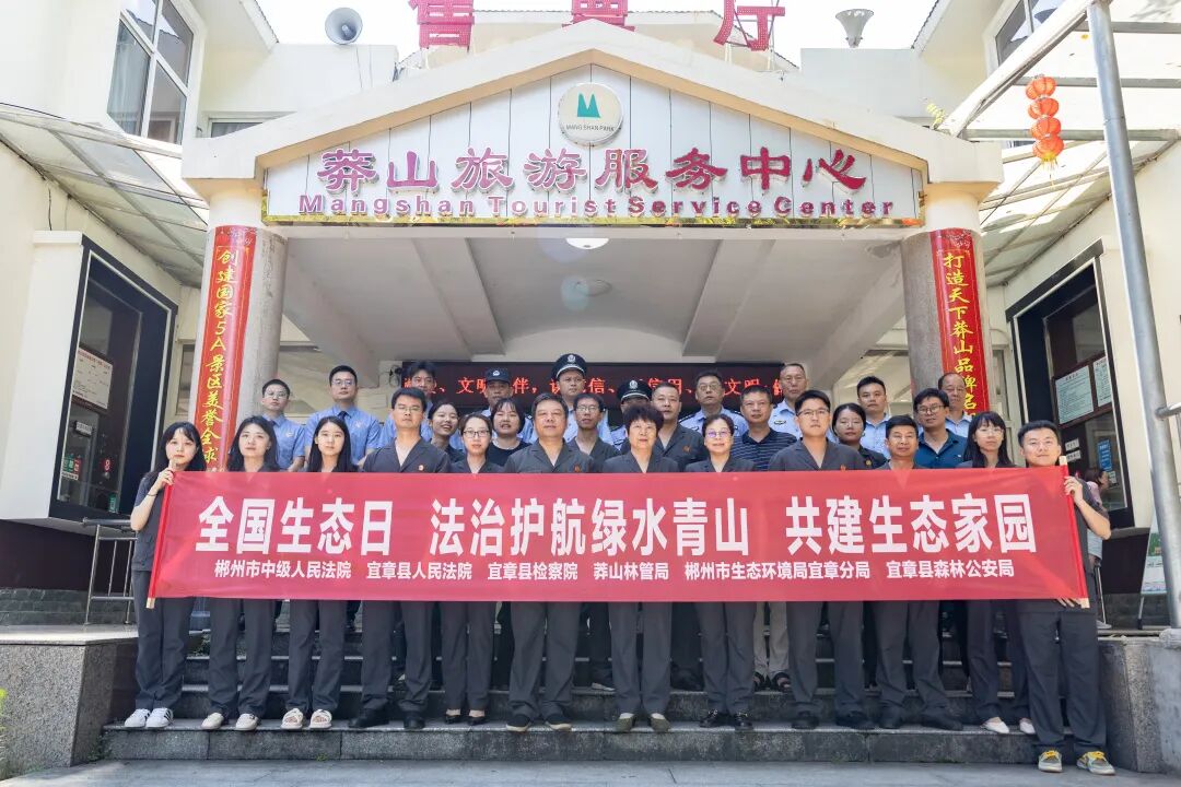 为增强民众对生态文明建设的认识,引导更多人积极参与到生态文明建设和绿色发展中来,8月10日,宜章法院联合郴州市中院、宜章县检察院、莽山林管局、郴州市生态环境局宜章分局、宜章县森林公安局开展首个全国生态日”法治护航绿水青山 共建生态家园”系列主题活动。