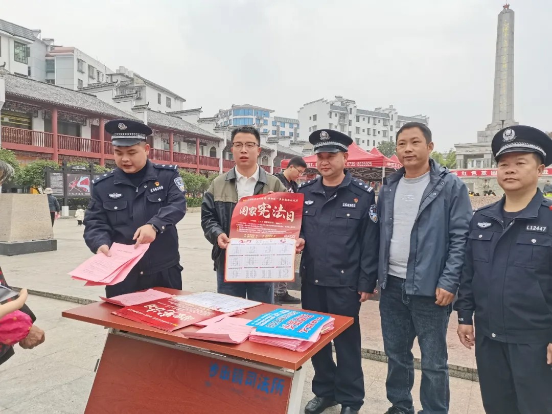 为大力弘扬宪法精神,维护宪法权威,推动宪法全面贯彻实施,12月5日,桂东县公安局沙田派出所利用赶集日群众赶集的机会,联合沙田镇司法所、沙田交警中队等部门到沙田军规广场开展国家宪法日主题宣传活动。